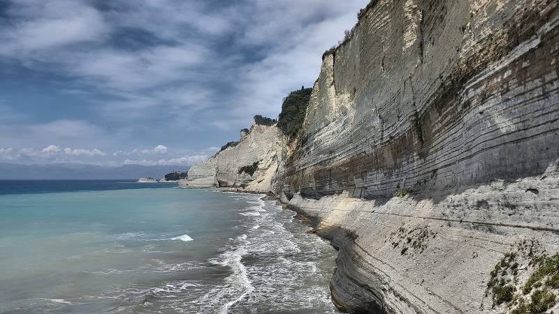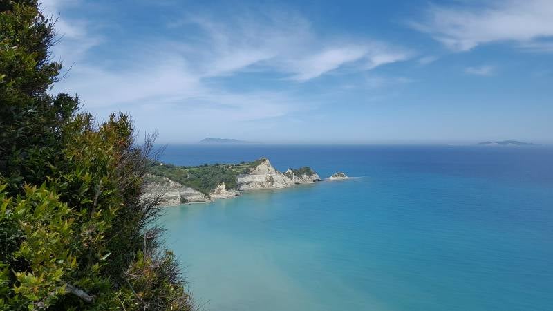 Via Canal d'Amour lopen/klimmen we naar Cape Drastis. Het is prachtig weer en het water heeft de mooiste kleuren blauw wat wil je nog meer?