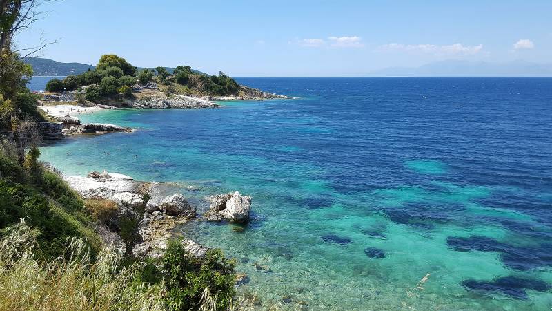 Vandaag weer een dagje naar het noorden. We beginnen met een rondje om Lake Antinioti. Bij het begin loopt een irritante hond die een heel stuk meeloopt. We raken 'm uiteindelijk kwijt omdat hij met andere mensen mee gaat lopen :) De route komt behalve aan het begin en het eind bijna niet langs het meer maar aan de andere kant ligt de zee en dat is ook mooi. Het vaste land lijkt heel dichtbij te liggen...