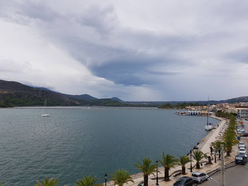 Een iets ander uitzicht als gisteren. Grijs, grauw en veel regen. Het waait nu nagenoeg niet, maar de wind is gedraaid dus misschien dat we er daarom weinig last van hebben.