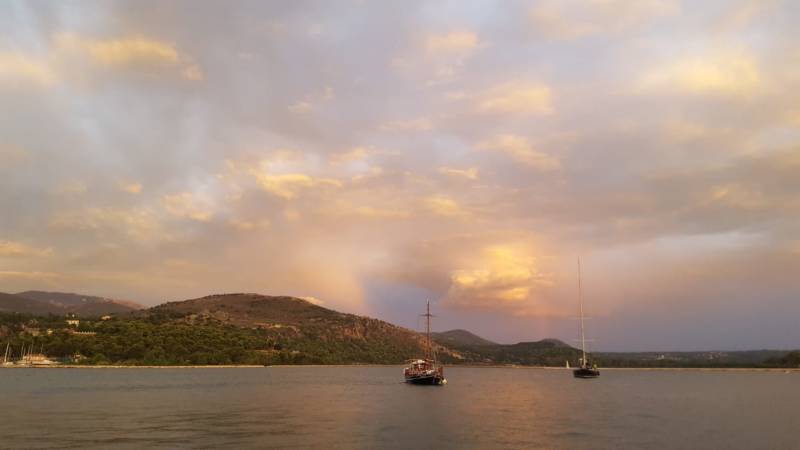 De lucht is al prachtig als we op zoek gaan naar een restaurant maar als we klaar zijn met eten is het nog veel mooier. En...er zijn steeds grotere stukken blauw te zien! Hopelijk is dit de ommekeer en hebben we vanaf morgen alleen nog maar mooi weer. Donkere luchten en wolken zijn absoluut niet erg, wind ook niet als het maar droog blijft.