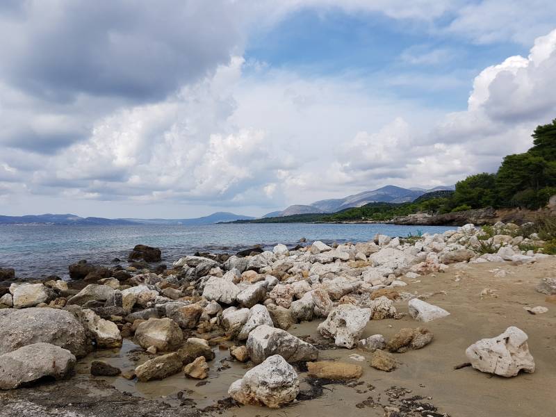 De lucht is behoorlijk donker als we op het eerste strand aankomen maar dit trekt redelijk snel weg.