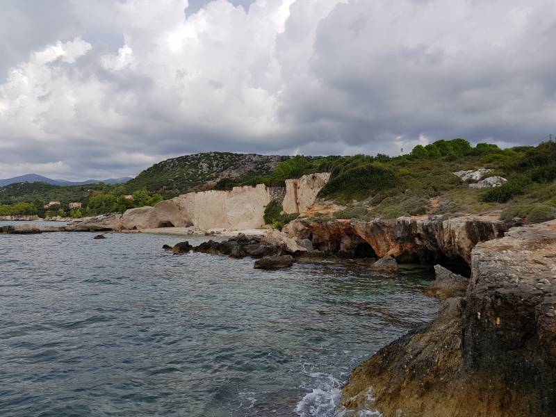 Ondertussen even bedenken wat we morgen gaan doen omdat ze weer regen opgegeven. We besluiten met de ferry naar Lixouri te gaan wat op het schiereiland Paliki ligt. Ongeveer een half uurtje varen vanuit Argostóli. Mocht het regenen dan kunnen we winkelen, zo niet dan kunnen we wandelen.
